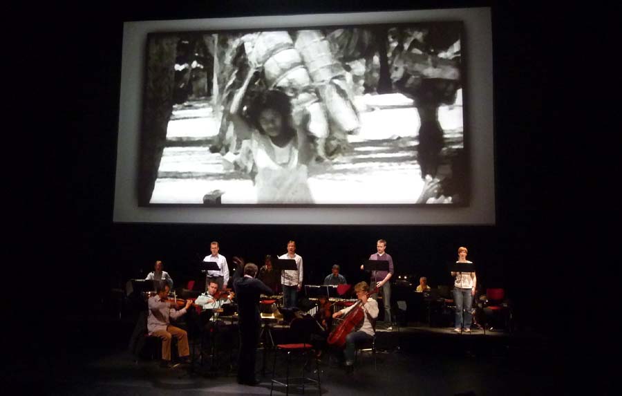 I have to admit that my heart sank at the first rehearsal. It was clear that some of the players weren’t entirely sure what they were supposed to play and we got off to a worryingly slow start. Still, we got our heads down and worked hard for the first day. Thankfully, the sound engineer, Carlos Gomez was absolutely brilliant. He was really quick to sort out the different mixes for each monitor, and that made all the difference. At the end of the first day, we managed to get through the piece (with a bit of prompting), so I knew we were in with a chance. Having won the players’ trust, they started to relax and the ensemble went from strength to strength.